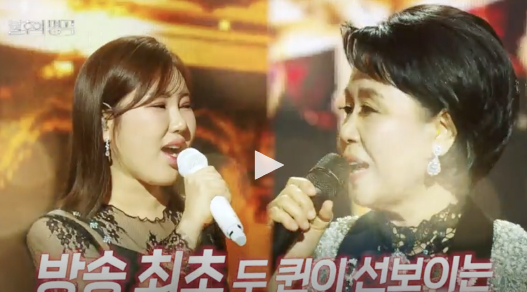 가요계의 살아있는 전설 심수봉과 독보적인 트로트 퀸 송가인이 함께하는 이번 무대는 한마디로 레전드라는 표현이 딱 어울립니다.